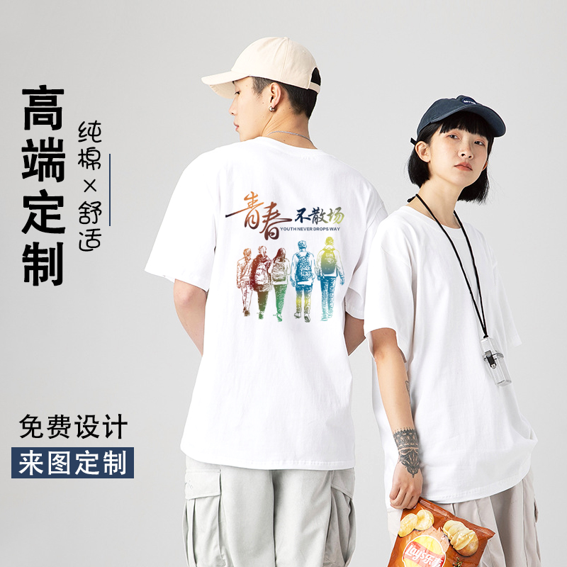 Half Sleeve Loose T-shirt Customised Workwear Print Character Logo Pure Cotton Culture Shirt Short Sleeve T-shirt Team Meet Diy