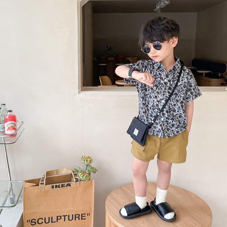 Children BAO WEN short sleeve shirt 2021 new boy summer fit Han version loose slim fit half sleeve baby cardiovert blouse