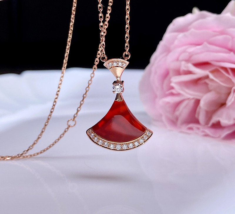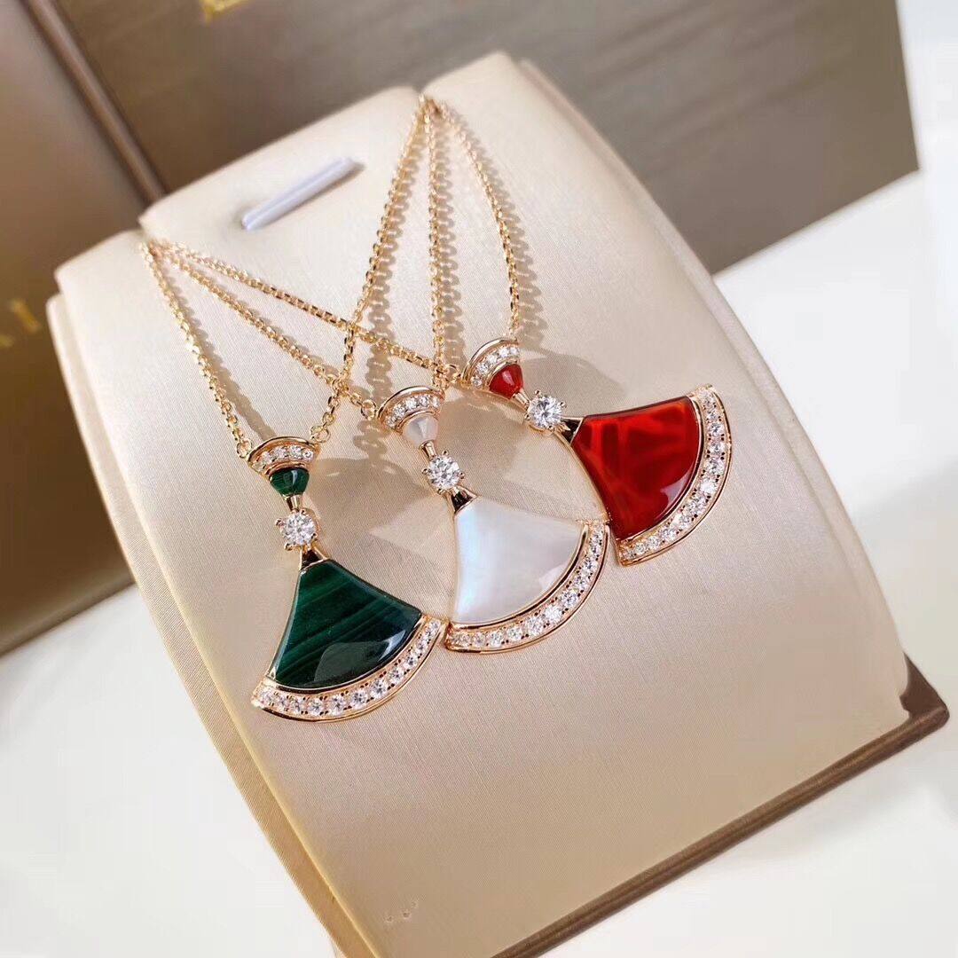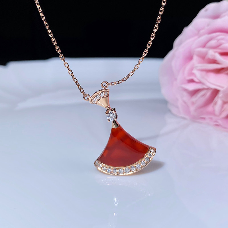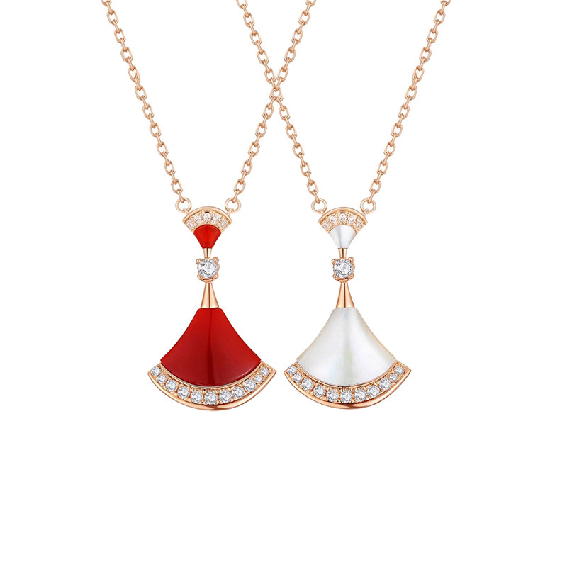 18K Rose Gold Red Manau Small Skirt Necklace 18K Rose Gold White Manau Small Skirt Necklace 18K Rose Gold Green Agate Small Skirt Necklace