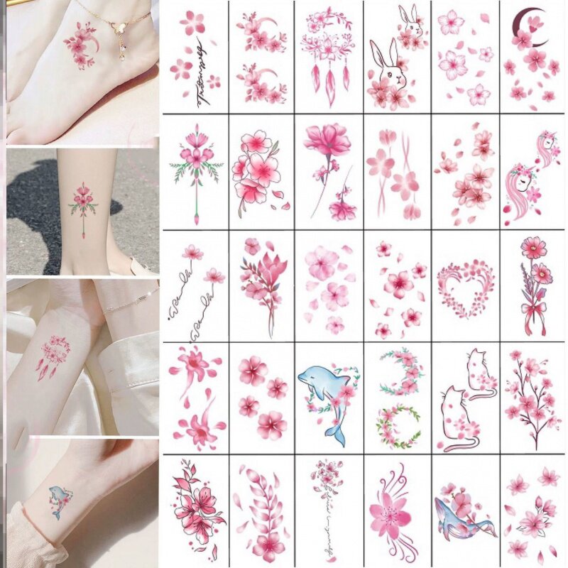 Tattoo Sticker Schoolgirl Waterproof Persistent Emulation Adolescent Girl Little Fresh Cherry Blossom Butterfly Letters Net Red Finger Tattoo