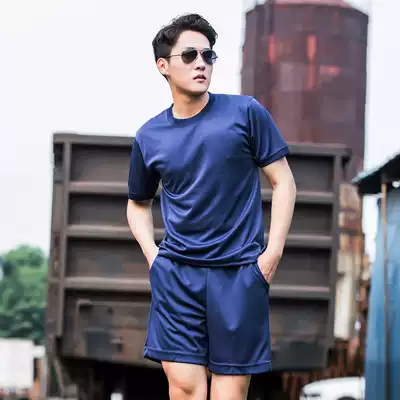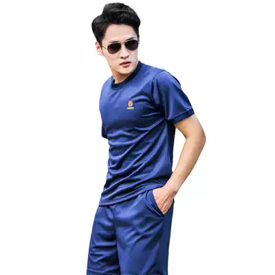 New fire physical training suit suit men's summer rescue short-sleeved shorts Blue sports outdoor military fan physical fitness suit