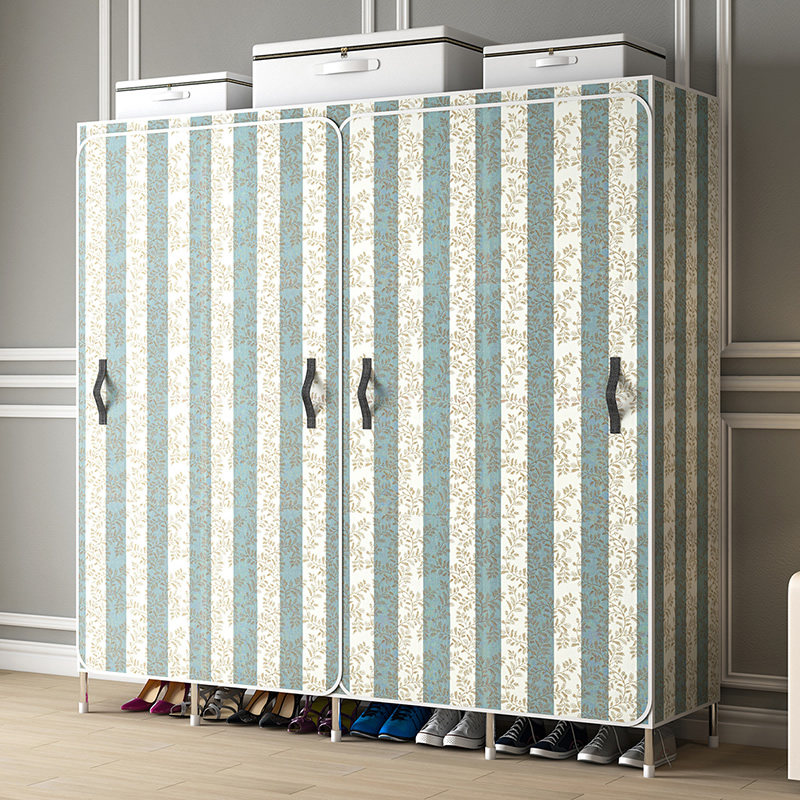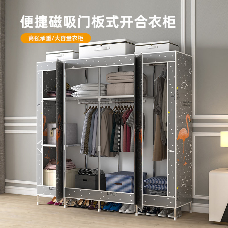 Wardrobe Rental Room Home Bedroom Simple Cloth Wardrobe Steel Pipe Plus Coarse Reinforcement Sturdy And Durable Open Door Style Chefs