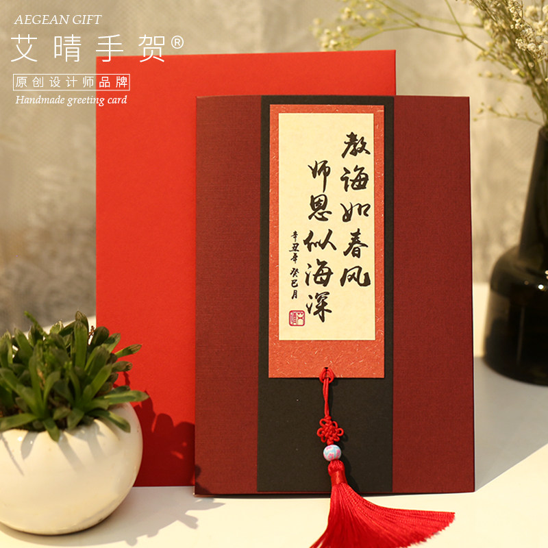 Teachers Festival China Wind Greeting Cards Retro Calligraphy Graduation Gift Women Business Custom Students Day High Grade Thanks Red