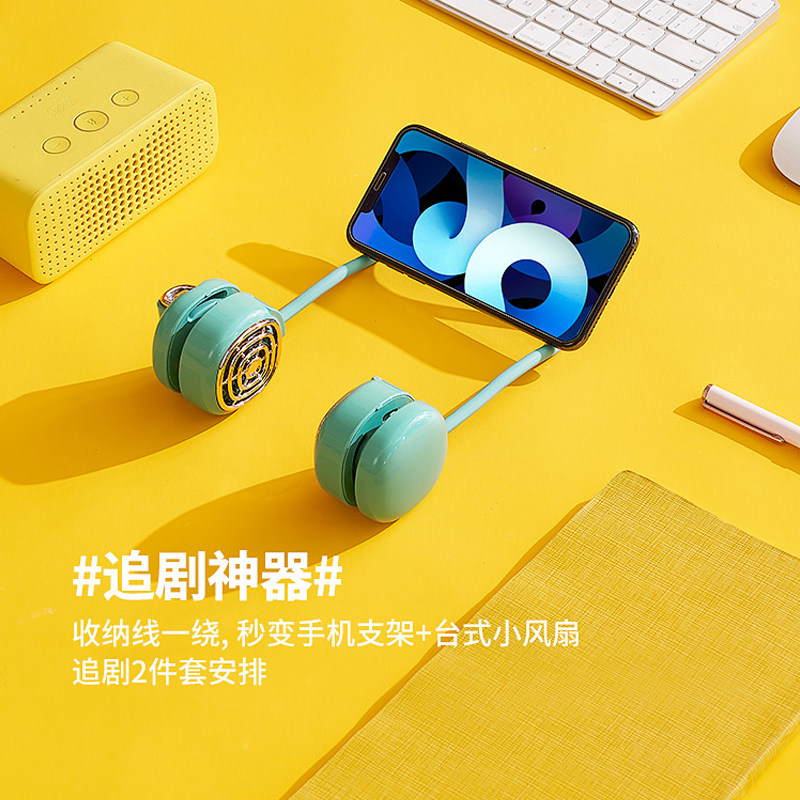 Love full success usb hanging neck small fan Summer lazy student dormitory mini cute charging desktop handheld portable portable small ultra-silent leafless hanging neck neck folding big wind