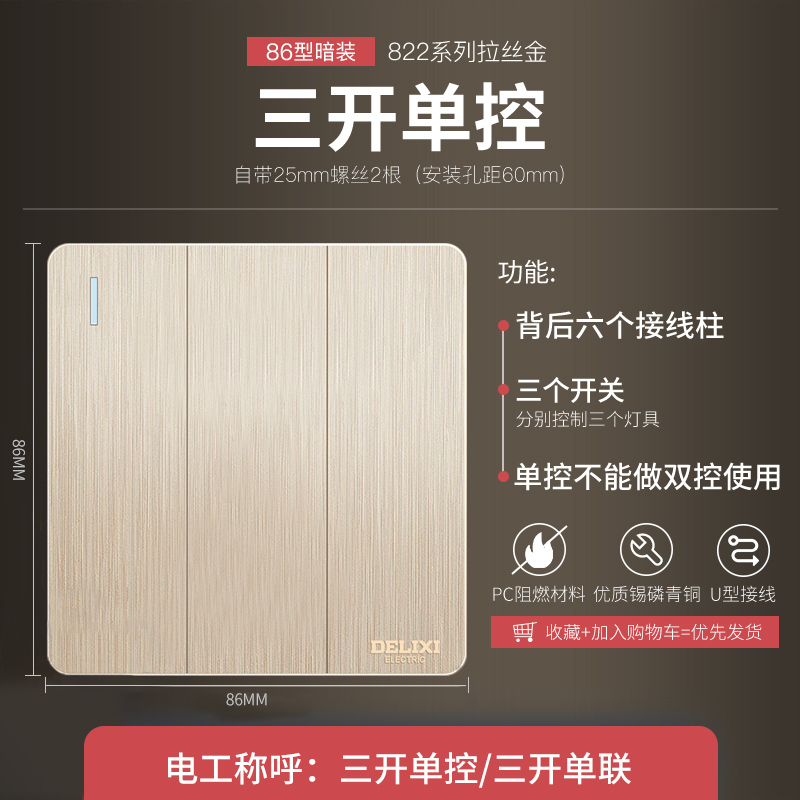 Dresi's official flagship store 86 Type three open single control switch panel Three open single-linked home concealed