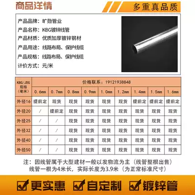 Galvanized KBG threading pipe JDG electric conduit metal buckle pressure threading pipe threading pipe walking pipe Iron Steel Pipe 4 in charge 16mm