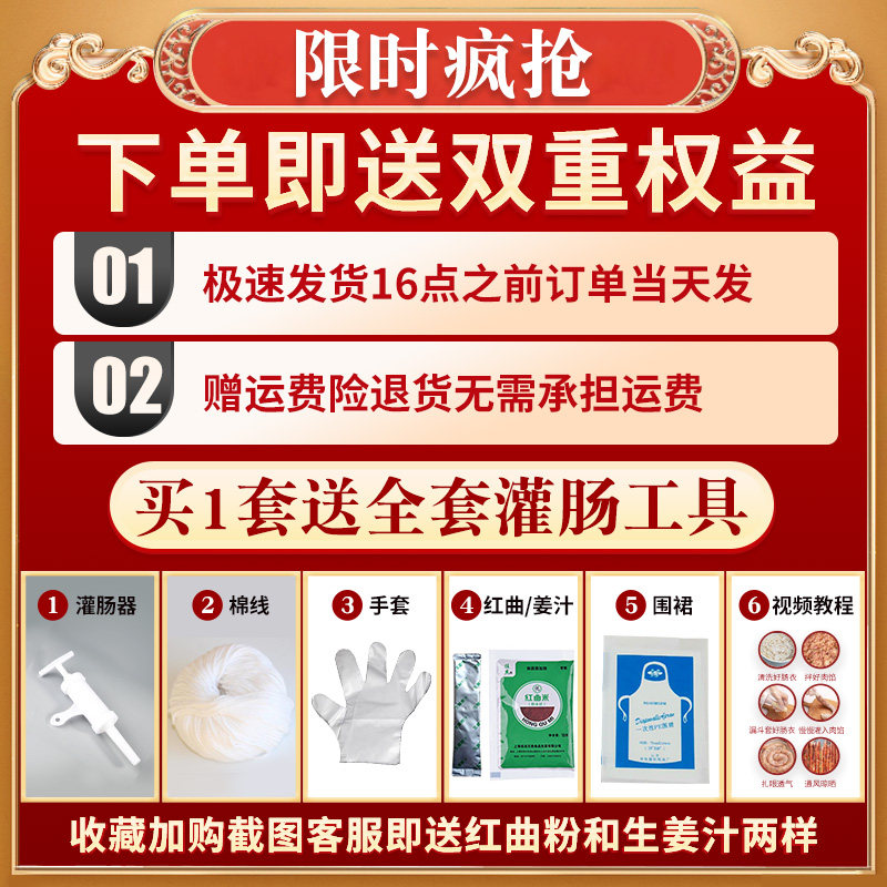 2 bags of casings+enema can fill 10 kg 2 bags of casings Random 2 flavors enema can fill 10 kg 2 bags of casings random 2 flavors (without tools)can fill 10 kg 3 bags of intestines