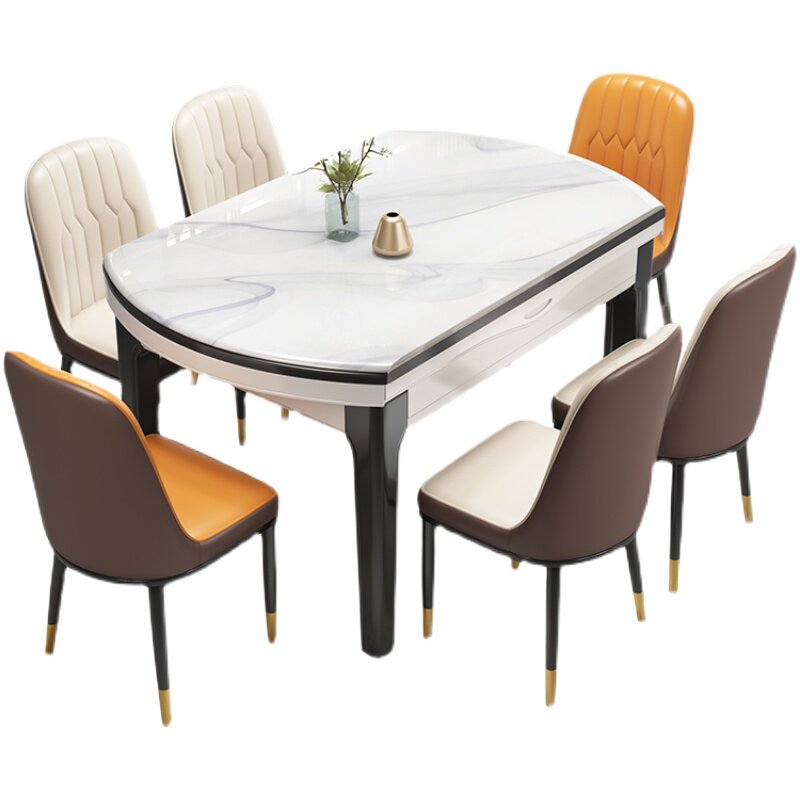 Solid wood bright rock plate dining table and chair combination retractable folding modern simple variable round table household small apartment