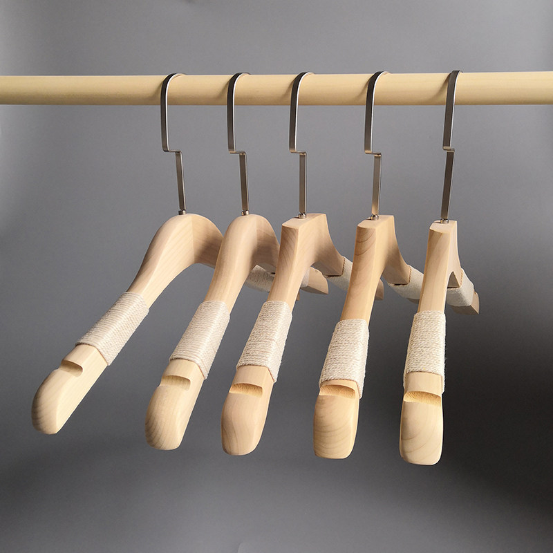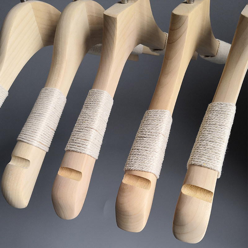 Tie rope log solid wood hanger Clothing store Women's clothing rack Tie rope Children's non-slip wood paint-free hanger