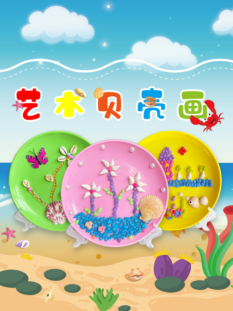 Children's shell painting kindergarten handmade diy production material package three-dimensional paste painting disc puzzle creative parent-child