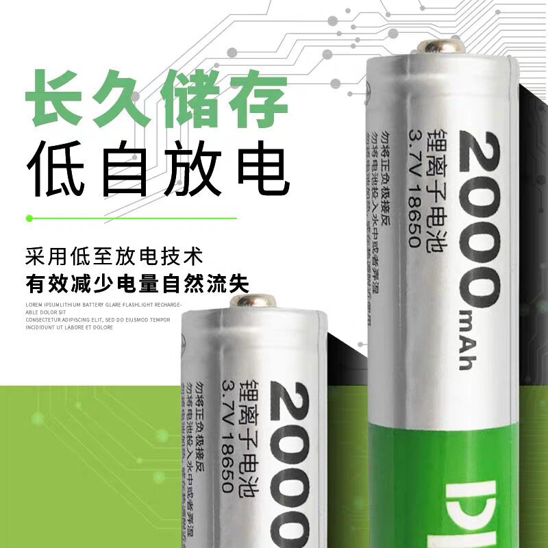 Long duration of 18650 lithium battery 2000mAh mAh can charge 3 7V flashlight lights small fan lamp battery