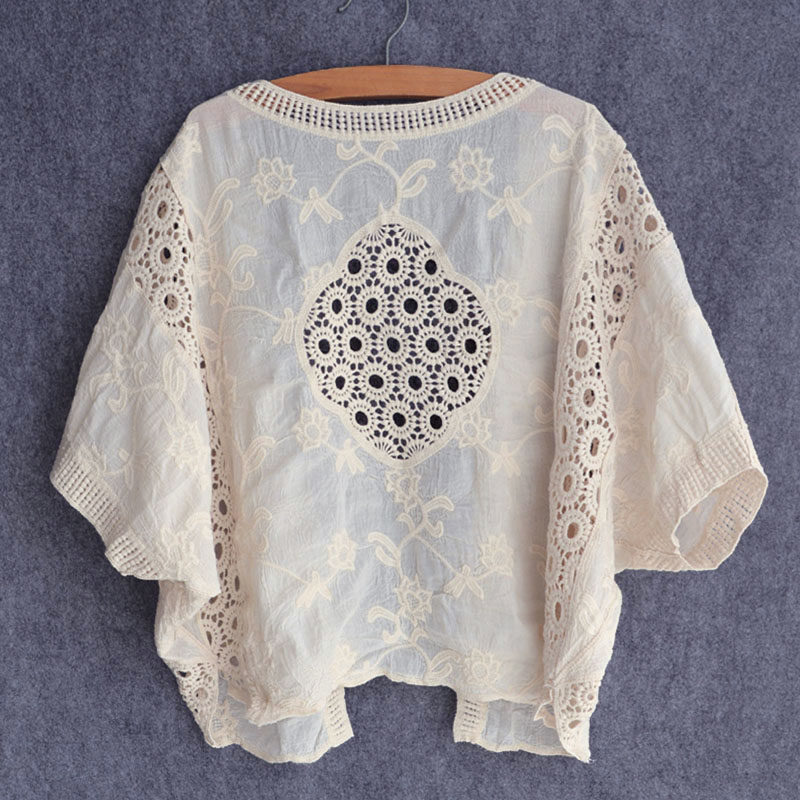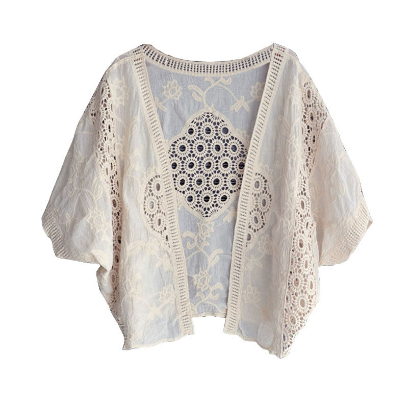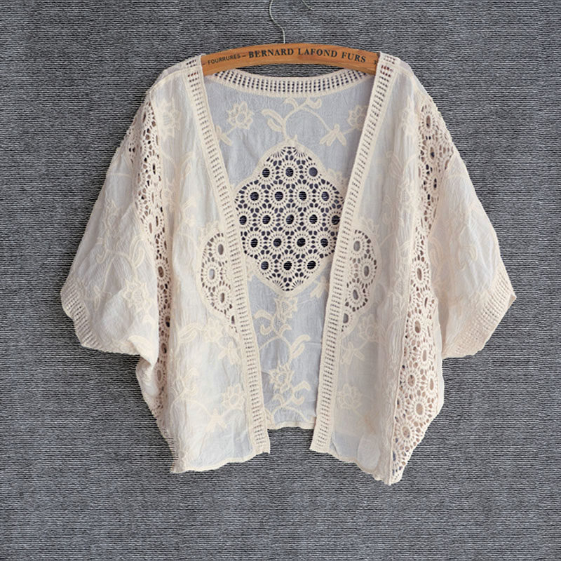 Pure cotton small outer lap Hollowed-out Lace Jersey Clown Hooded Jacket Summer Sunscreen Bat Jersey Woman Blouse Short