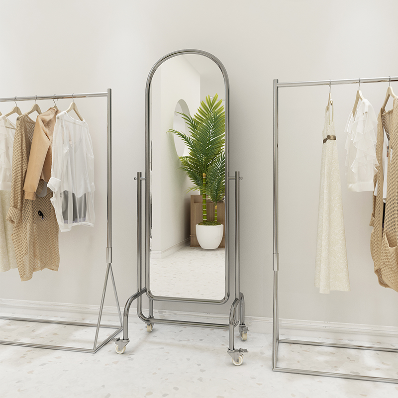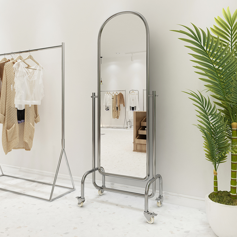 Clothing store audition mirror dedicated stainless steel beauty thin body mirror home with light luxury girls landing mirror