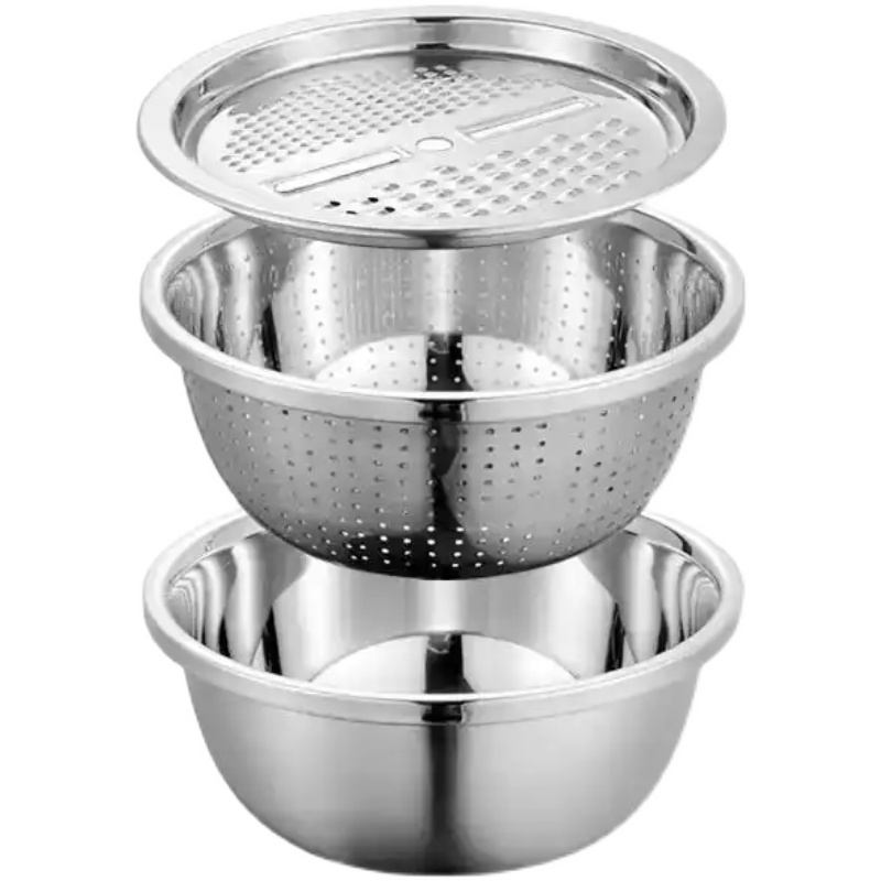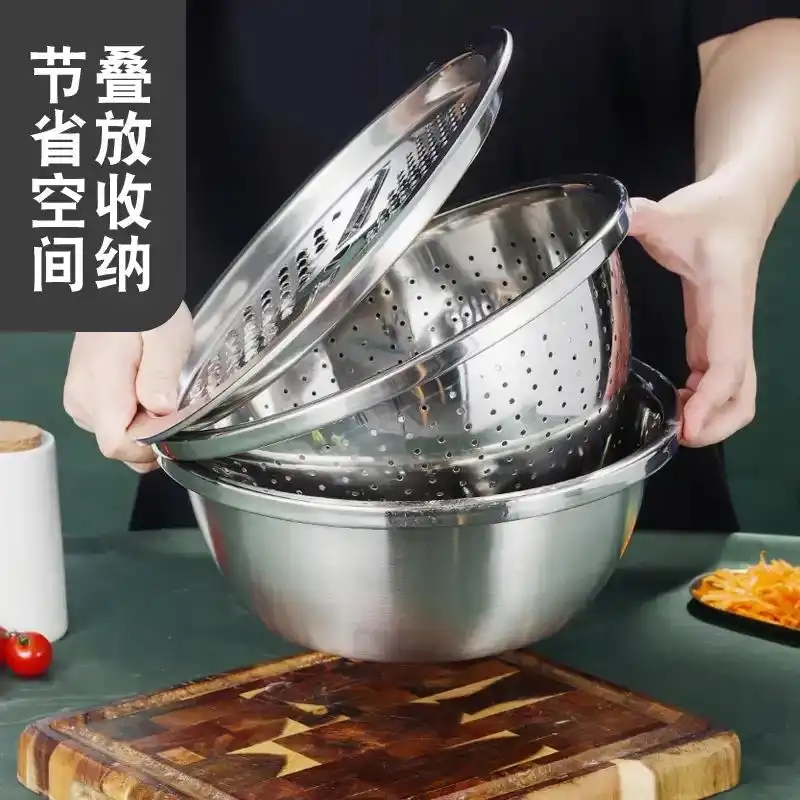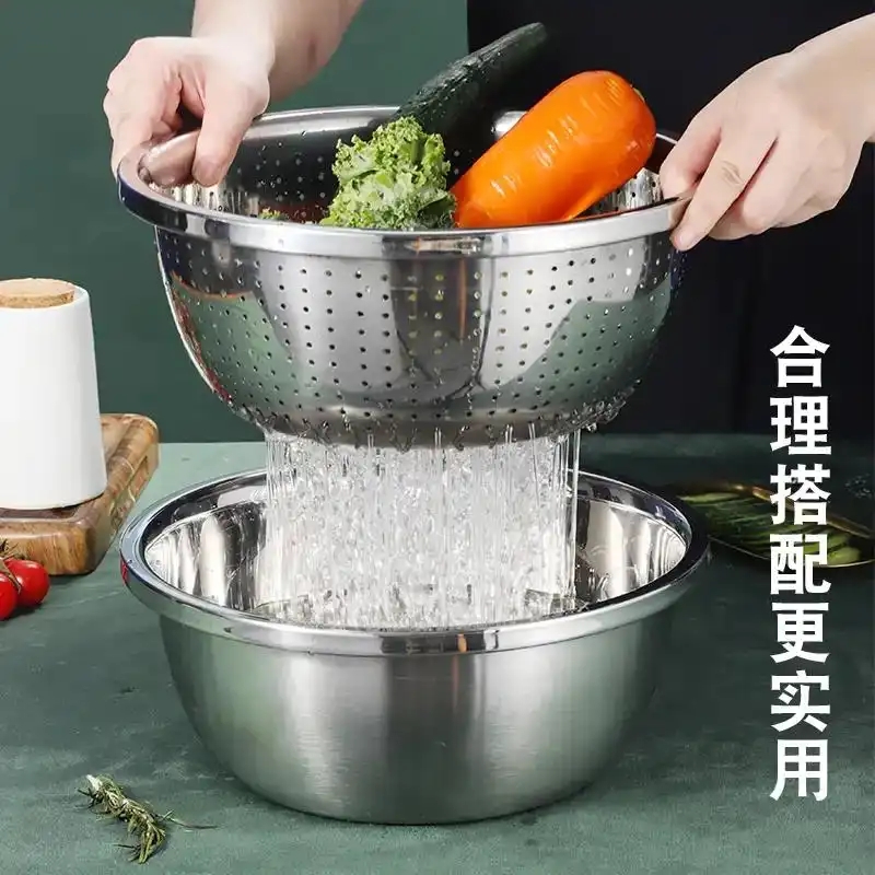 Mod Department German Stainless Steel Shaved Silk Three Sets Wash Vegetable Basin Leash Basket Filter Drain Basin Naughty Wash Rice Sieve