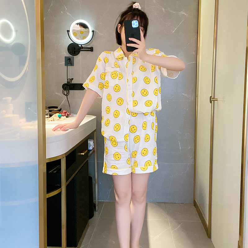 Smiley Face Pyjamas Women's Summer Thin Cotton Cotton Cloth Cardiovert Shorts Shorts Shorts Sweet Korean version of the Cartoon Home Suit Suit