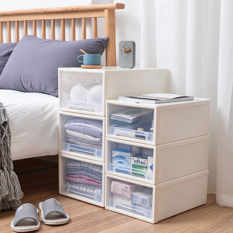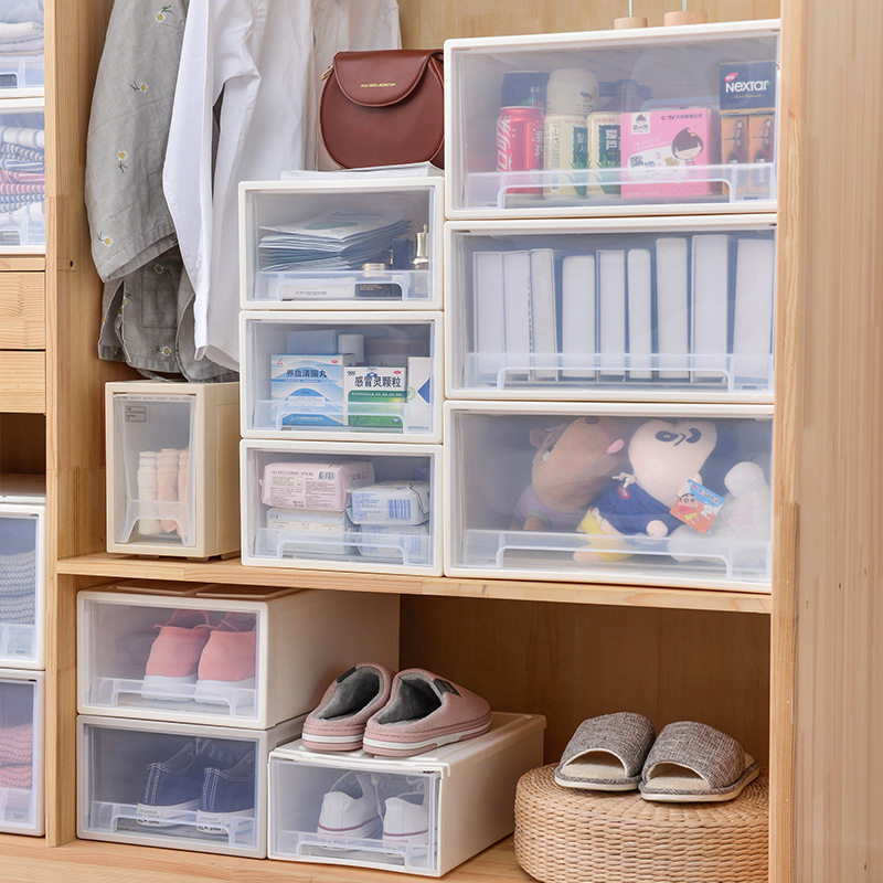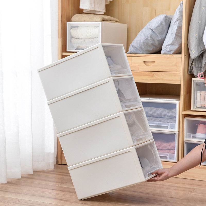 Drawer-type clothes containing box plastic home wardrobe transparent containing box toy finishing box clothing lockers-Taobao