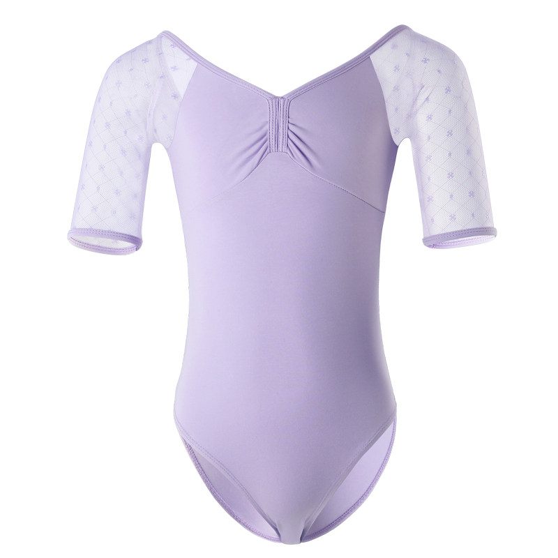 Children Dance Jersey Style Body Suit Midsleeve Summer China Practice Dance Suit Girls Lace Dancing Costumes Purple