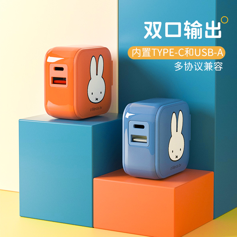 miffy Miffy small square charging head typec mobile phone charger accessories PD20W fast charging plug universal suitable for Apple Huawei Xiaomi Samsung mobile phone typec plug