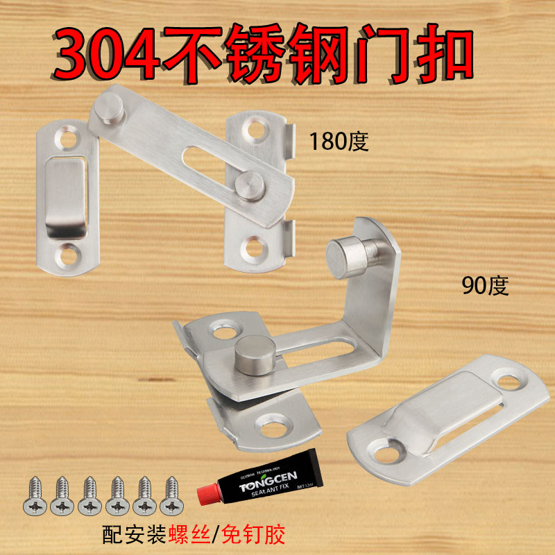 Punch-free 90-degree wooden door buckle right-angle lock sliding door sliding door latch room door lock buckle stainless steel buckle door bolt