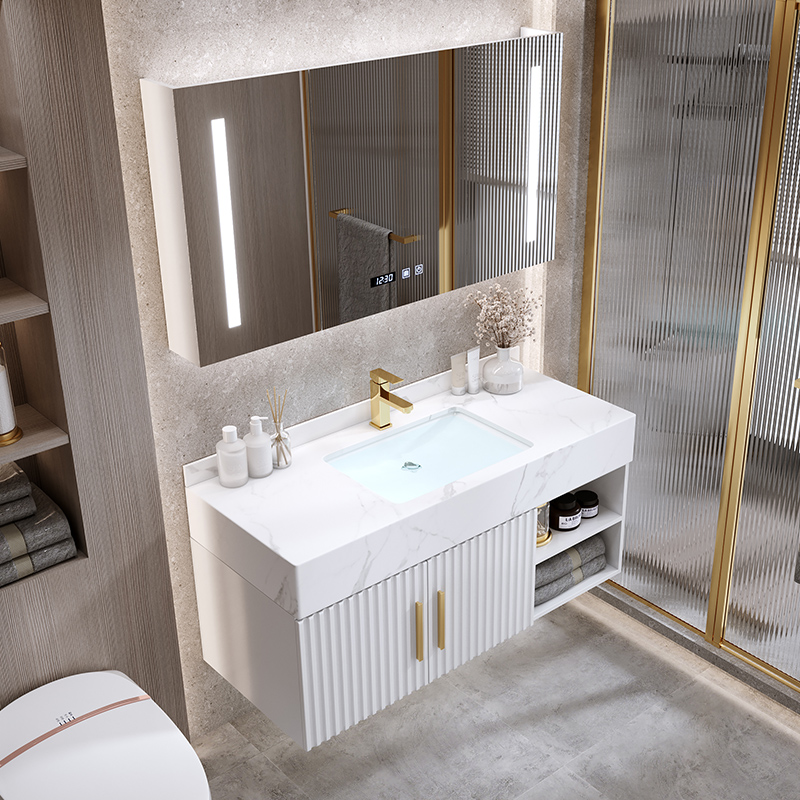 Rock board one-piece light luxury bathroom cabinet combination Simple modern bathroom hand wash basin set Wash table mirror cabinet