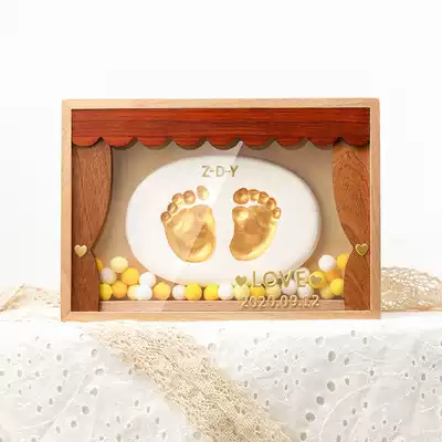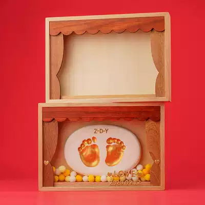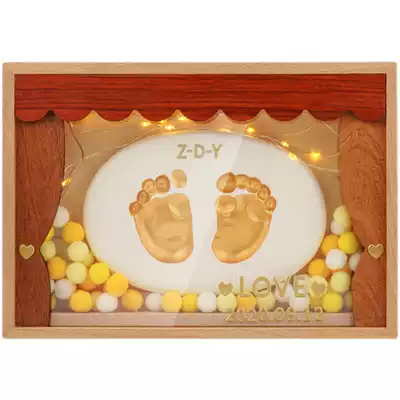Wood art dad hand and foot print baby souvenir newborn full moon baby hand foot ink frame 100 days gift
