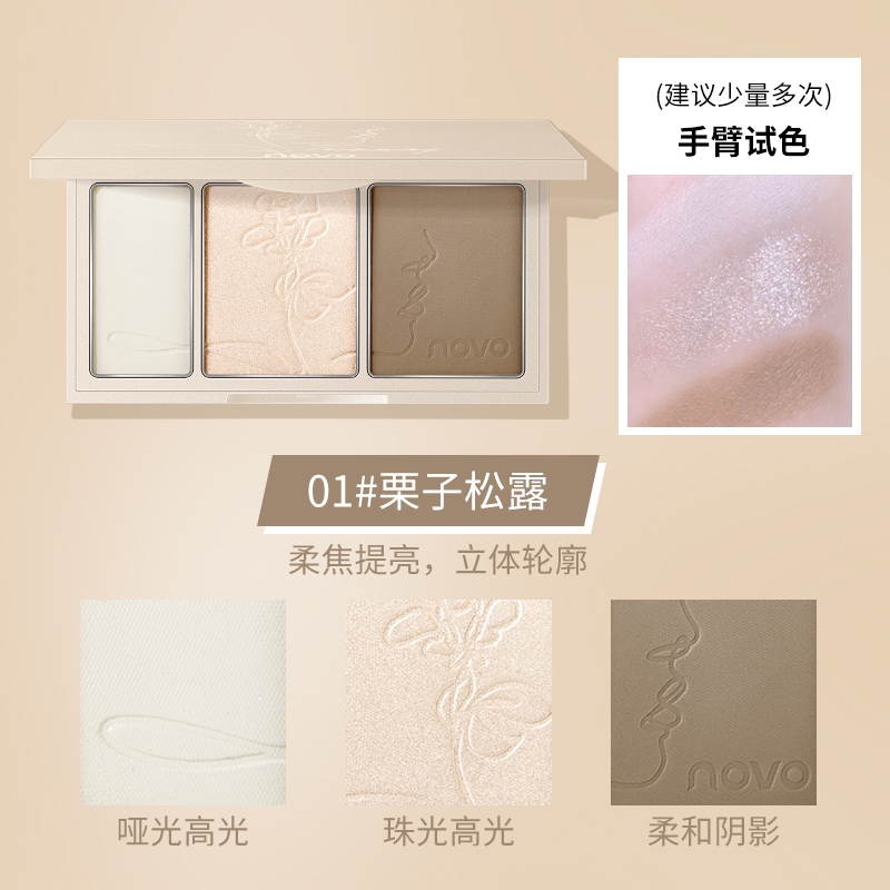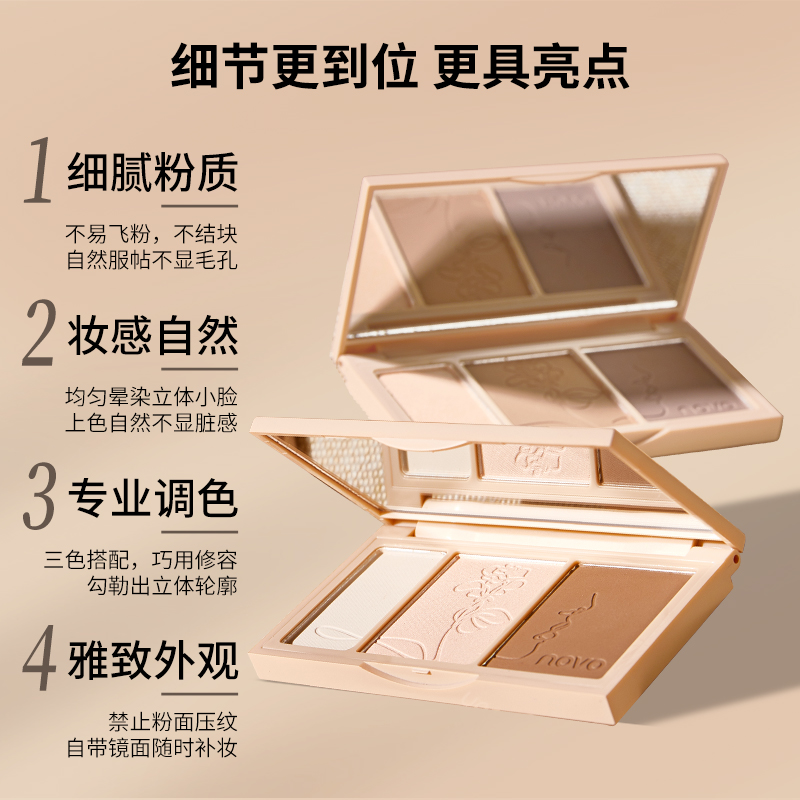 novo three-color trim plate, ginger highlight, fine flash, face brightening, powder, matte shadow, nose shadow, all-in-one plate