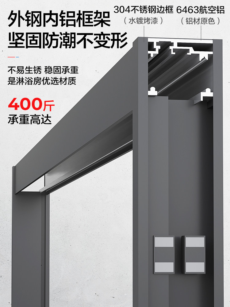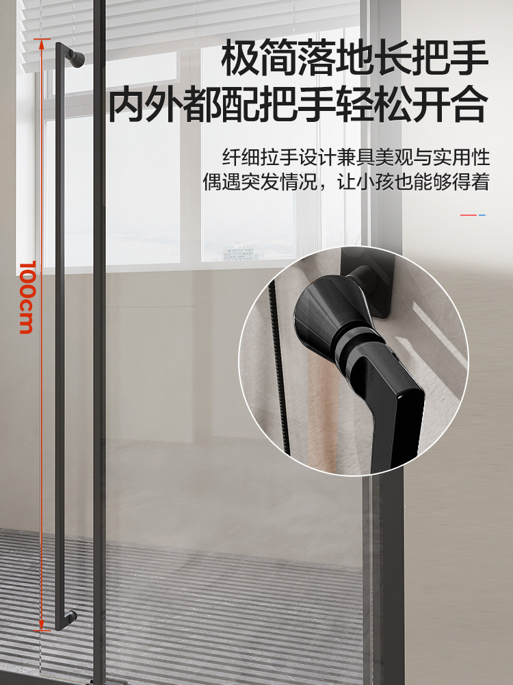 Langwhale one-shaped shower room three-link sliding door dry and wet separation partition glass bath screen home bathroom bathroom