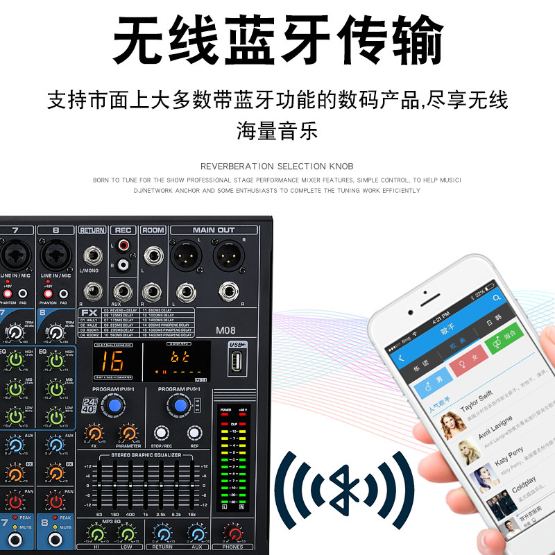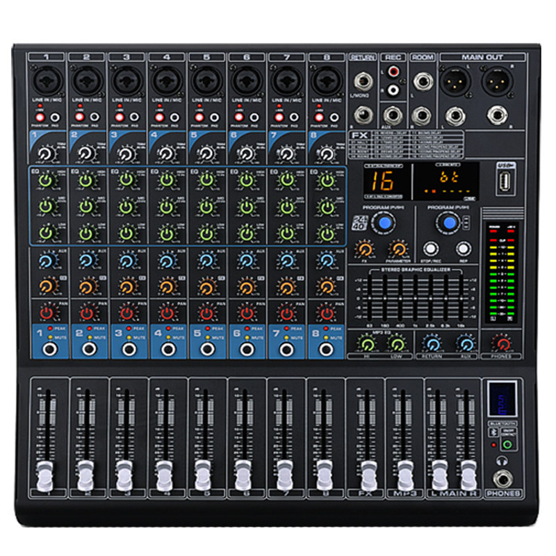 Professional digital mixer USB Bluetooth home 8-way 12-way 16-way stage performance conference mobile phone sound card live broadcast