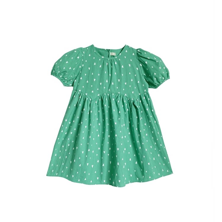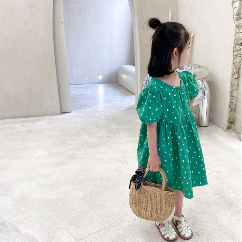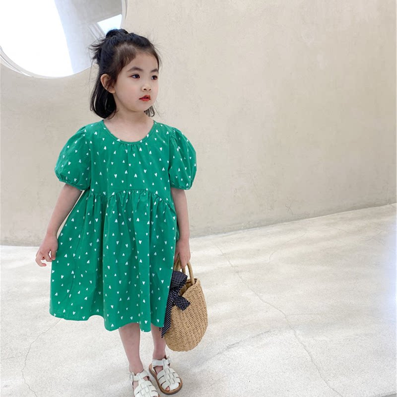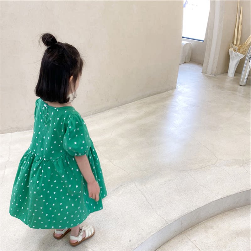 Eve Children's Dress Little Girl Love Printing Love Doll Girl Green Little Fresh Sweet Dress