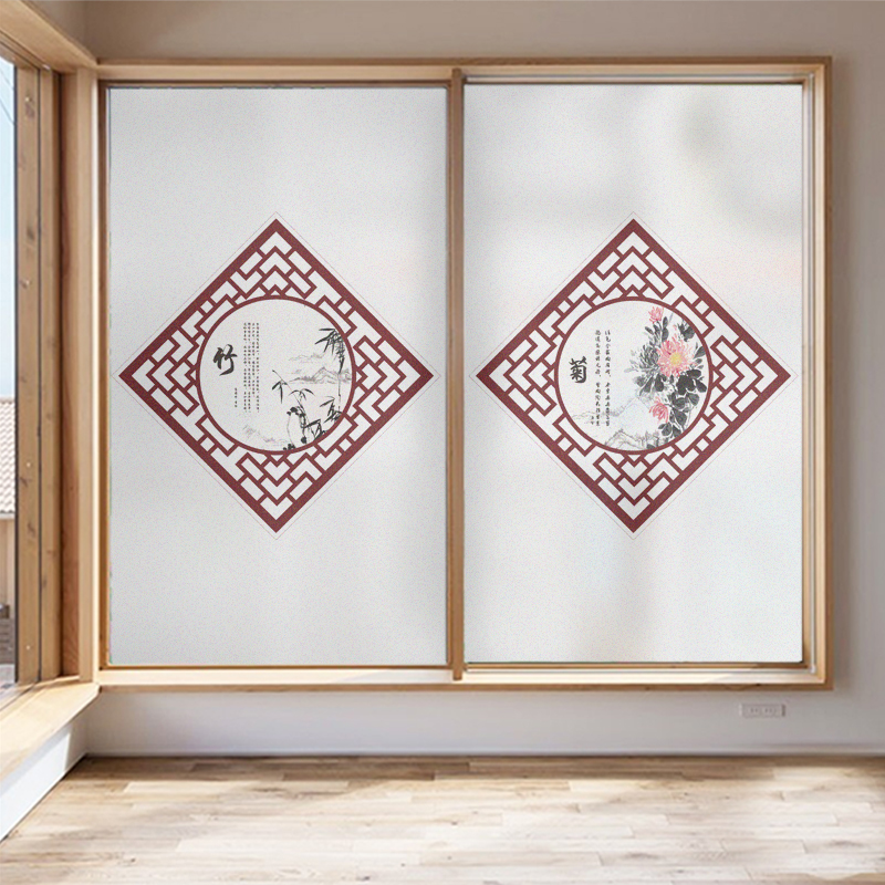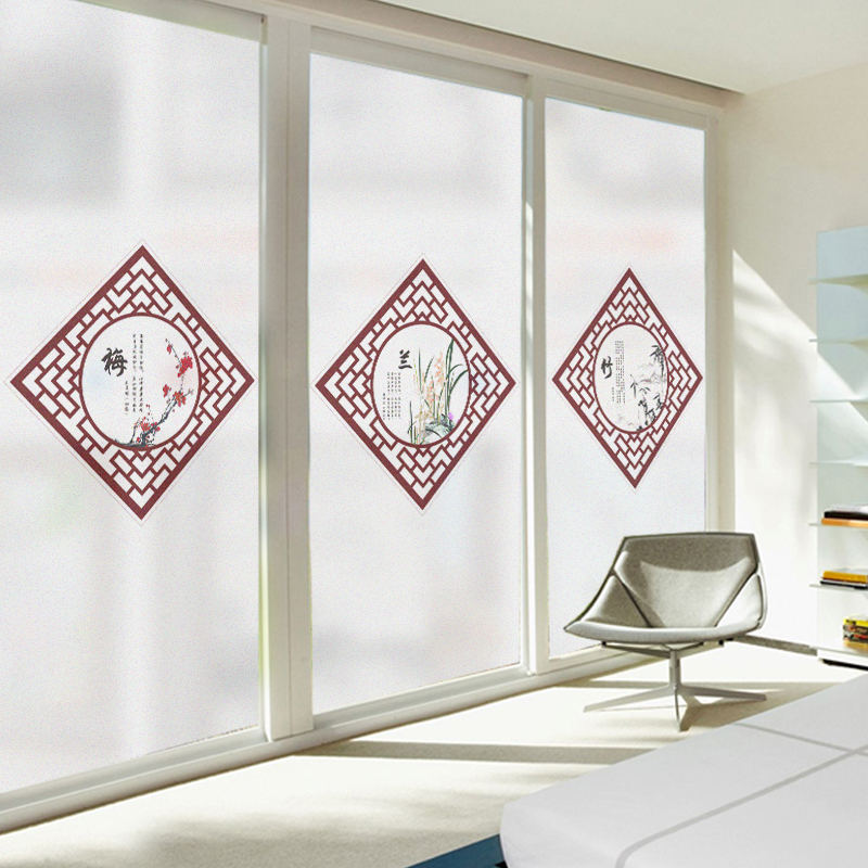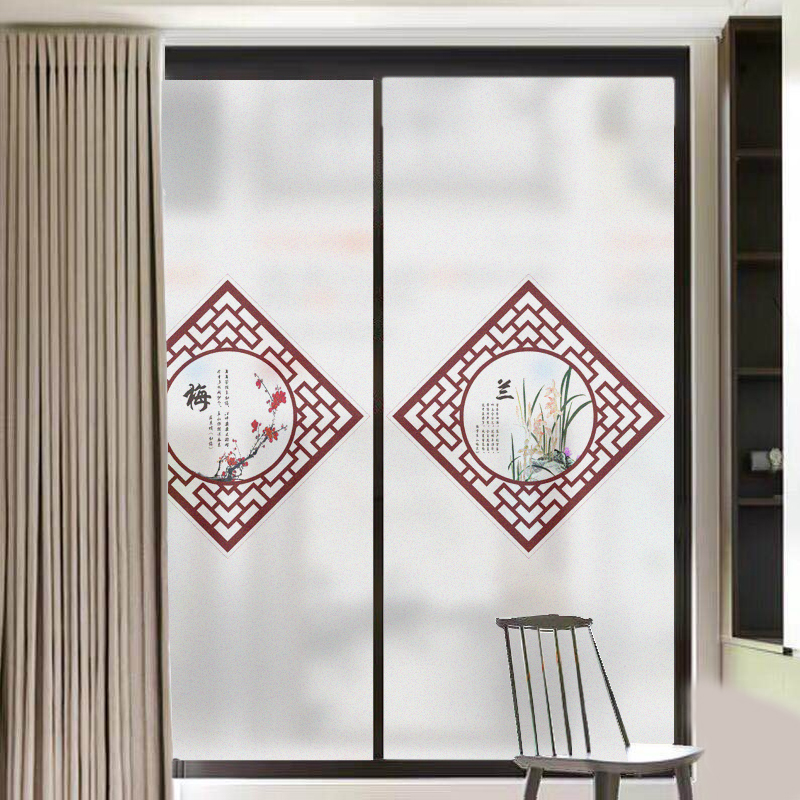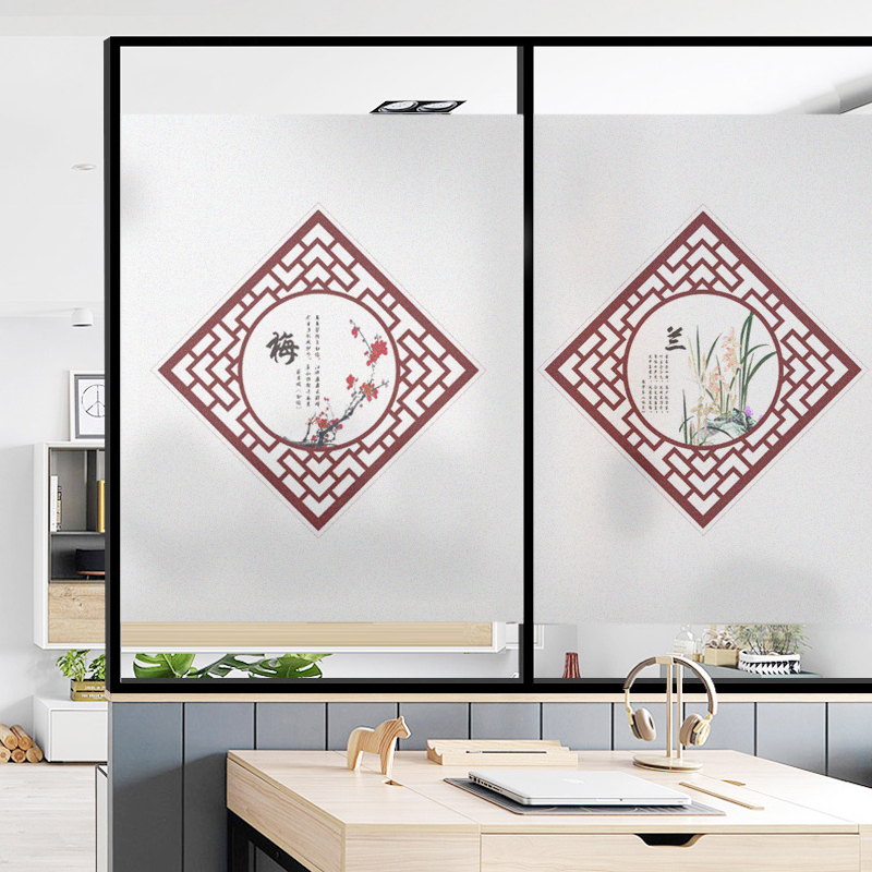 Chinese-style window glass stickers plum orchid bamboo chrysanthemum translucent opaque living room sliding door frosted film anti-peep and sunscreen