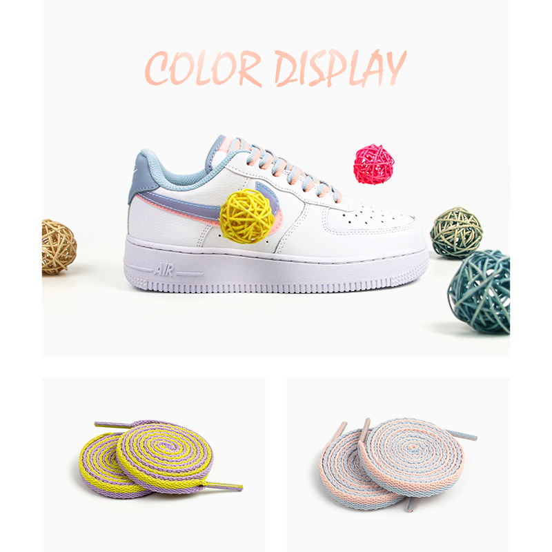 Fit Air Force One AF1 White and Blue Powder Color Matching Mandarin Duck nike Shoelace AJ macaroon Shoelace Rope Nike Double Color