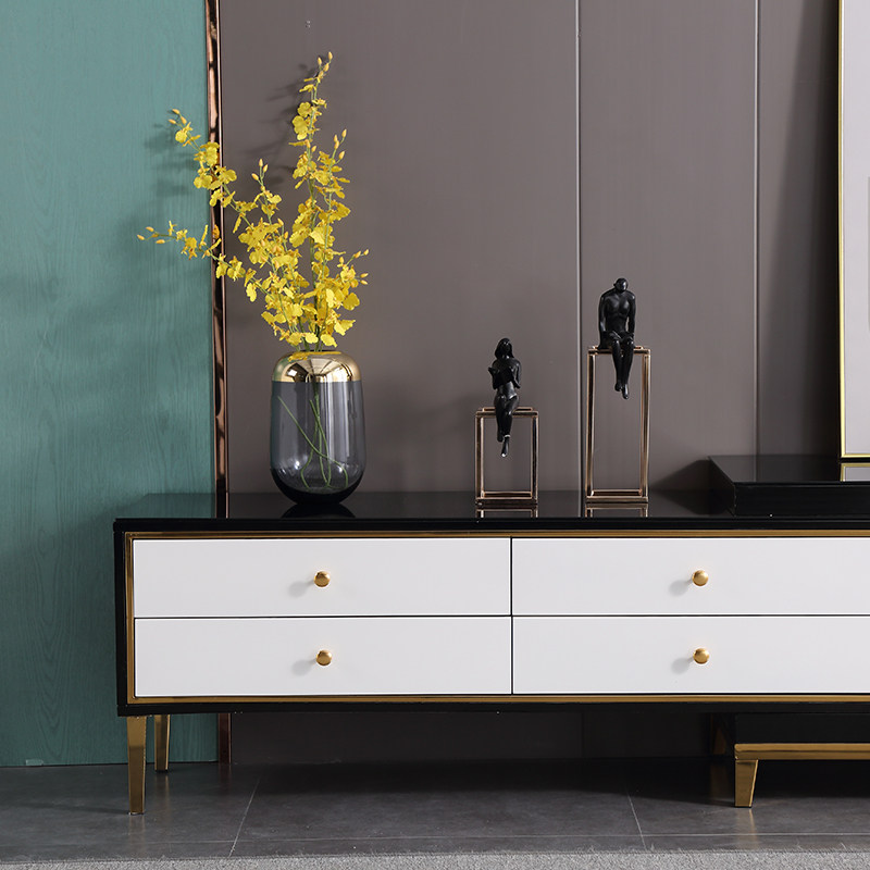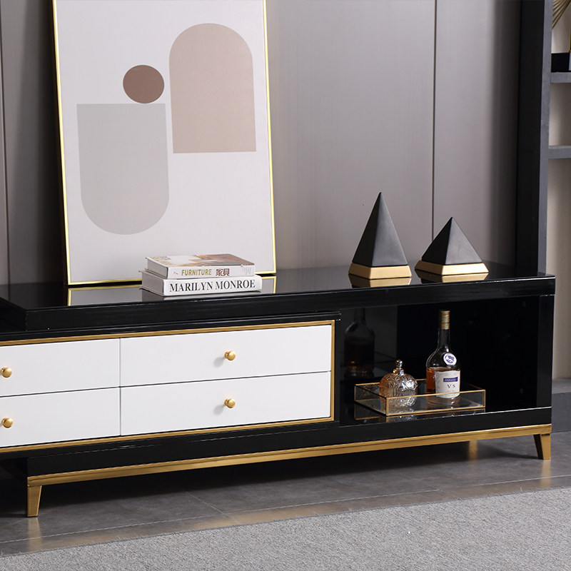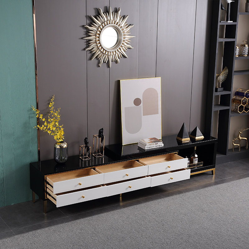 Light luxury TV cabinet Small apartment simple modern retractable living room Solid wood tempered glass TV floor cabinet Nordic