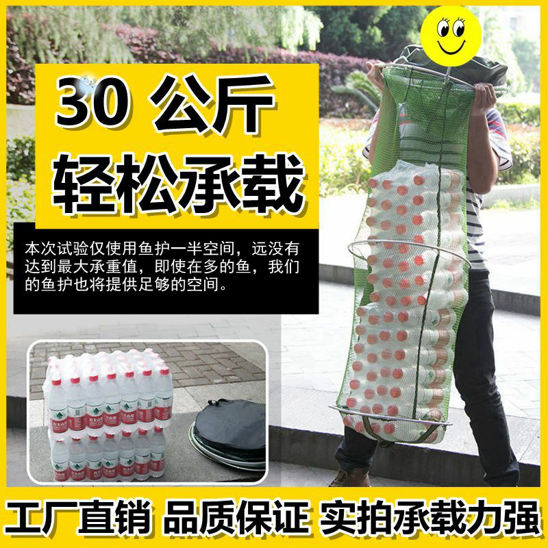 Fish Guard Net Pocket Fishing Family Fishing Bag Fish Mesh Pocket Stainless Steel Double Ring Anti-Scraping Fish Cage Bag Gluing Fishing Gear Black Pit Speed Dry