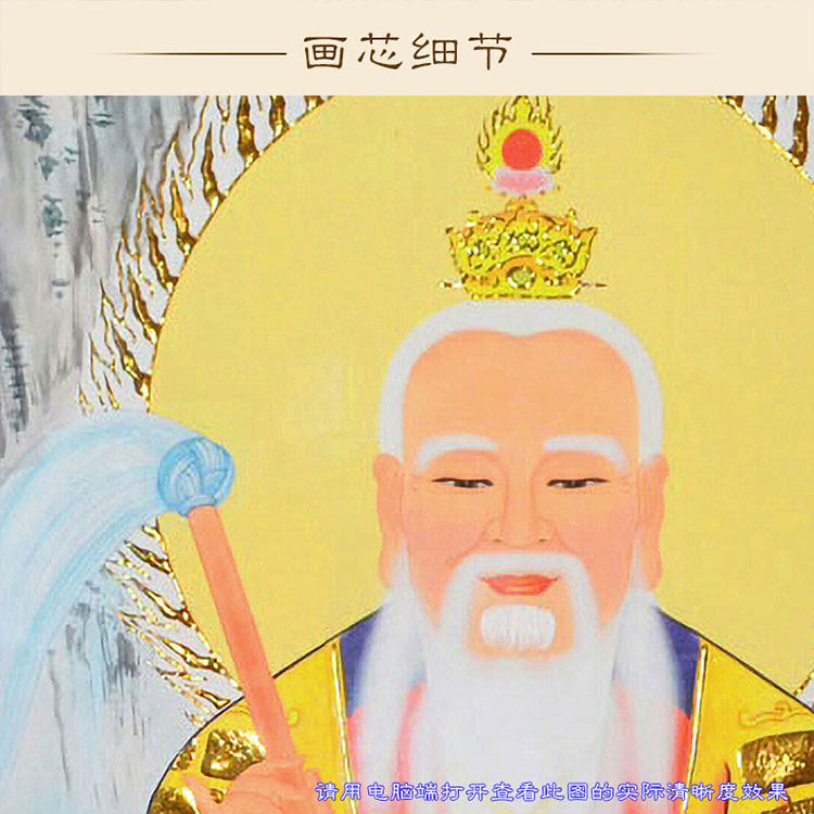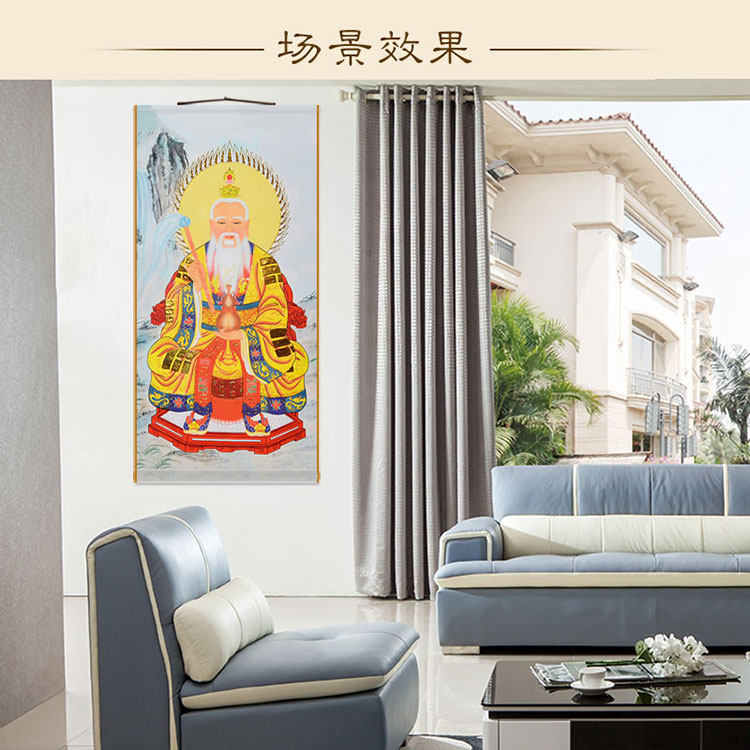 Taishang Laojun whisking map moral Tianzun patriarch fairy painting silk cloth material scroll hanging painting water and land painting