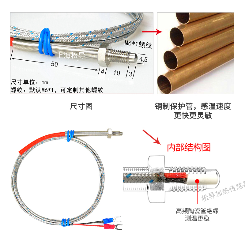 K - type thermocouple M6 screw temperature probe with spring multi - stack electrothermocouple E temperature sensor