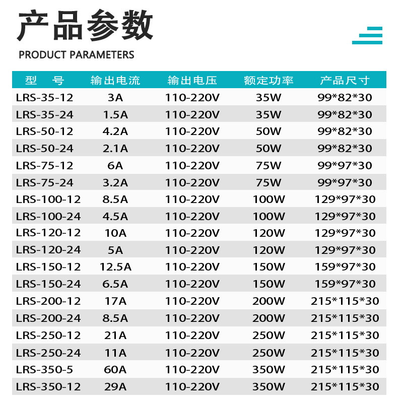 LRS-50-12V4 2A LRS-200-12V17A LRS-50-24V2 2A LRS-350-12V29A