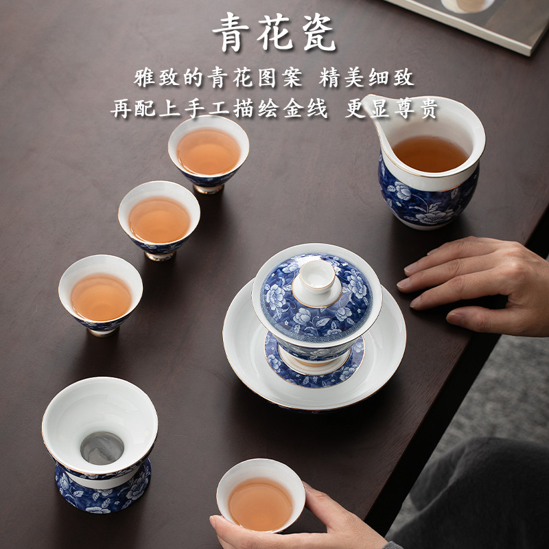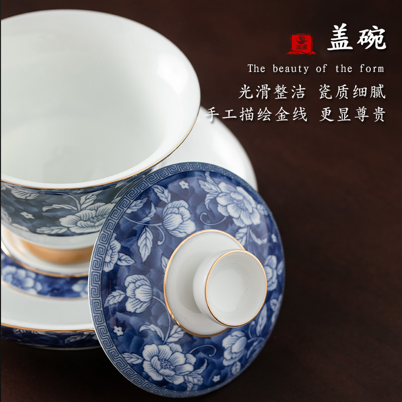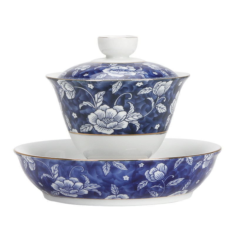 Green Flower Porcelain Triple cover Bowl Tea Cup Tea Bowl Home Tea White Porcelain Kongfu Tea With Ceramic Pot bearing Dry Bubble table single