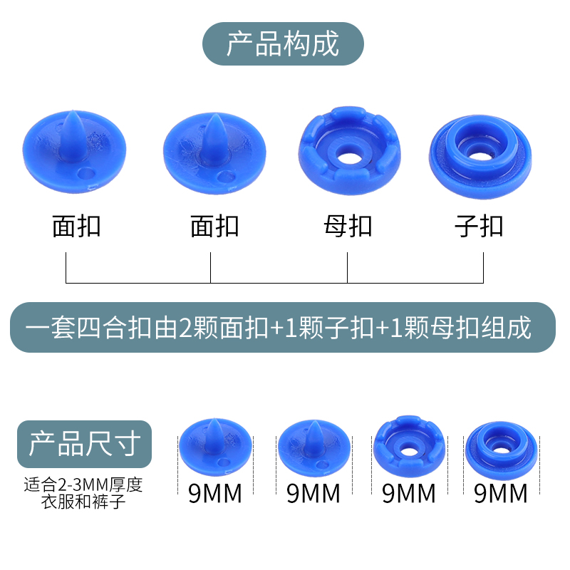 9mm four - tip button - shackle baby button - stealth baby clothes press round child button