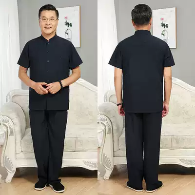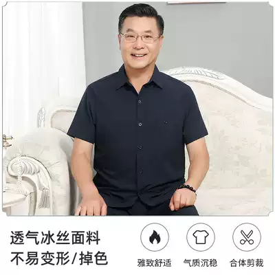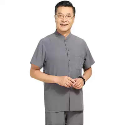 Tang suit men summer Chinese style ice silk short sleeve large size T-shirt middle-aged and elderly father summer tunic suit men