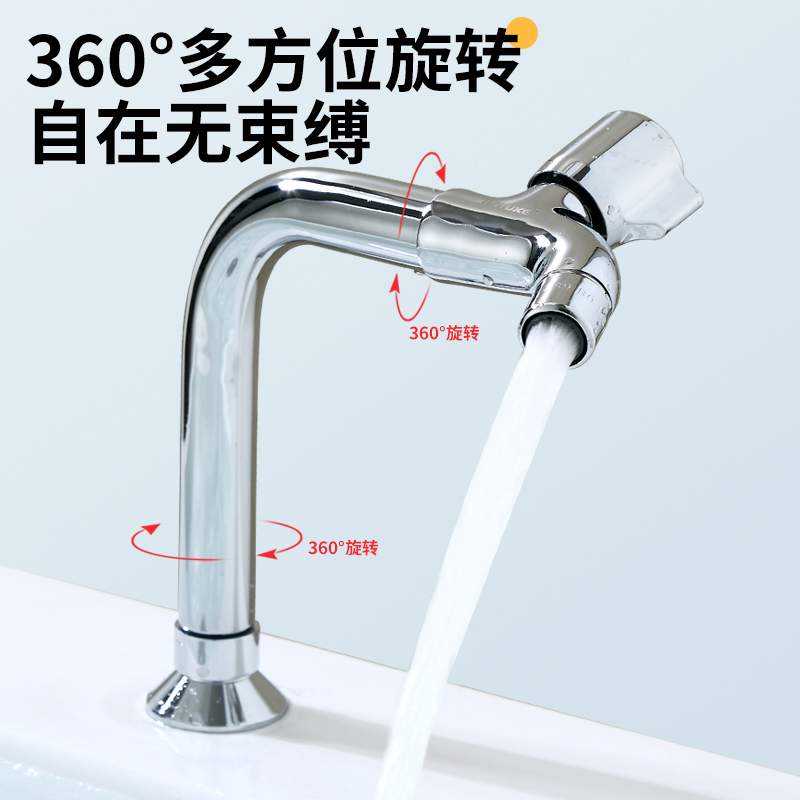 All-copper decent basin single cold water faucet universal rotating washbasin powder room washbasin table upper and lower basin washbasin