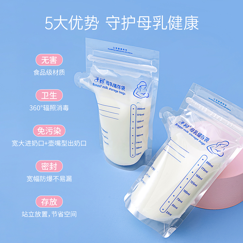 Child first milk storage bag breast milk fresh-keeping bag disposable milk storage bag breast milk storage bag 200ml frozen milk storage bag
