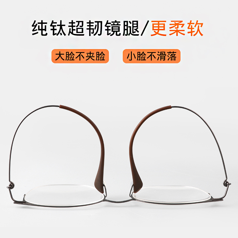Ultra light pure titanium eye frame male can be equipped with degree lens big face slim half-frame eye frame Myopia Glasses