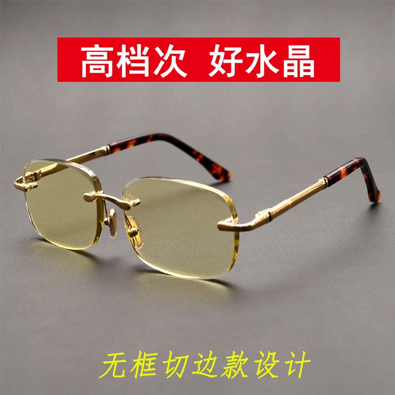 High-end new bamboo leaf green crystal glasses men's natural old stone mirror real crystal stone sunglasses driving fatigue resistance