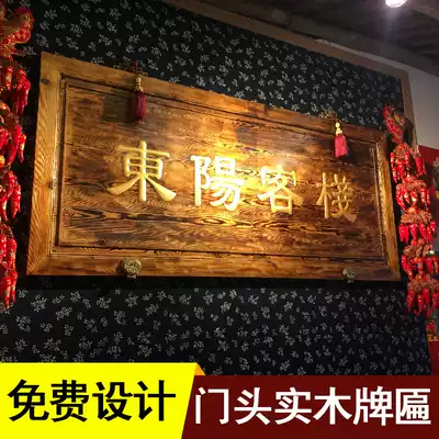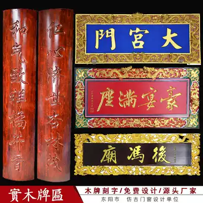 Wooden plaque solid wood opening wooden plaque custom antique lettering couplet wood carving signboard custom door shop