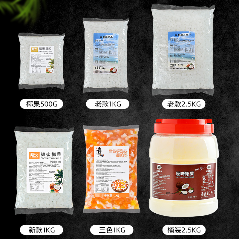 Pineapple Taste Coconut bagged 1kg (new product) Original Taste Coconut Bagged 1kg (Store Length Recommended) Original Taste Coconut Bagged 500g (Tried Dress) Coconut Fruit Barrel Fit 2 5kg (long strip) Three-color