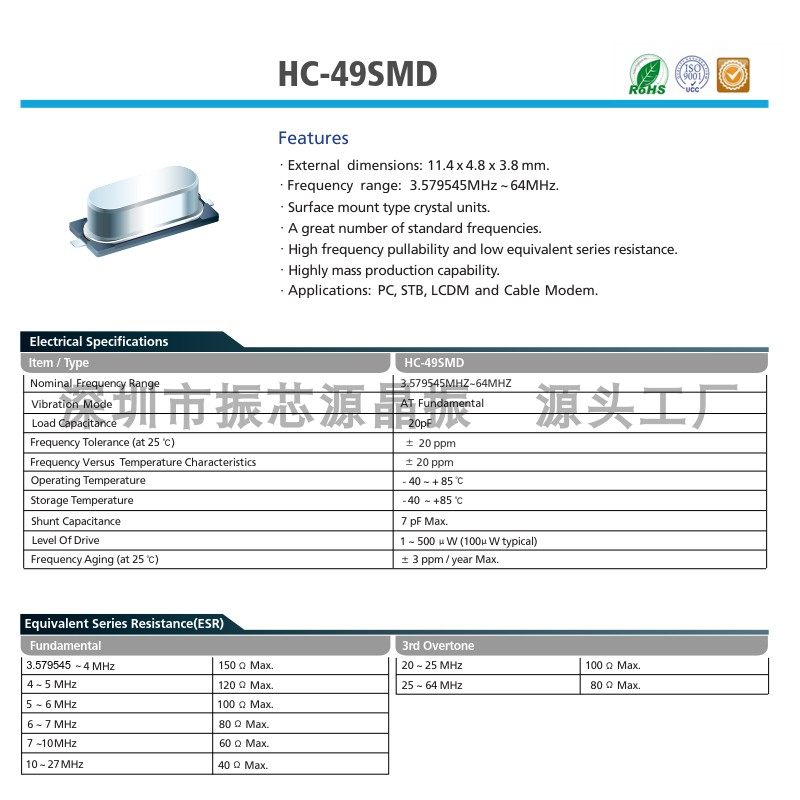 9C27000326 SMD Crystal Oscillator HC-49SMD 27MHz Industrial Grade Passive Quartz Crystal Resonator 2 Pins