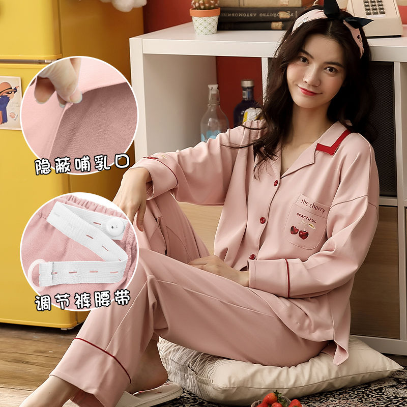 Meng DingXiong Sat in the Moon Spring Summer Thin Section Postpartum Pure Cotton Pregnant Woman Expectant Mother's Maternal Fall Breastfeeding Pyjamas