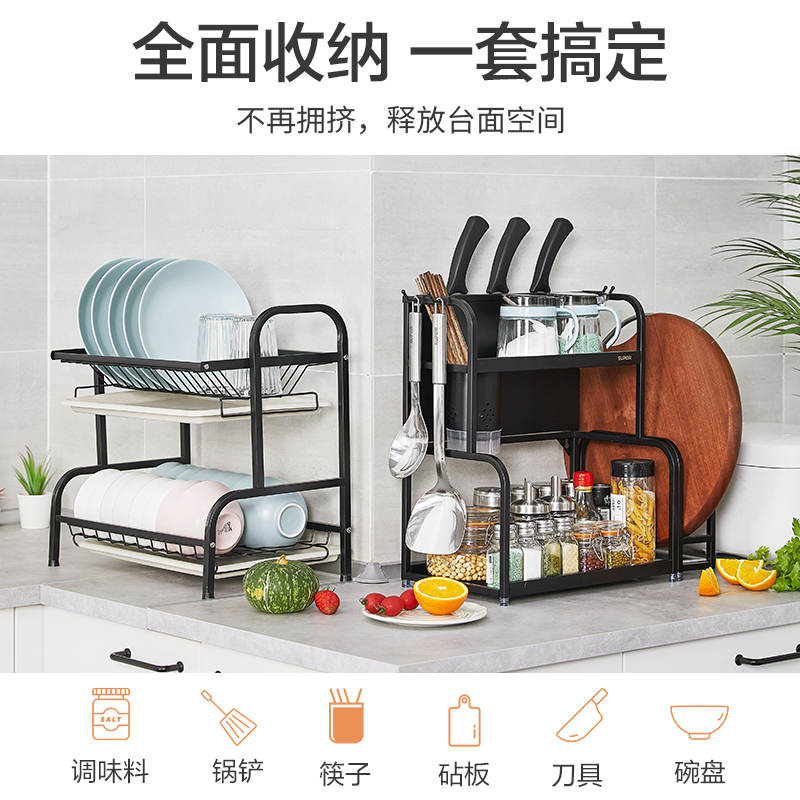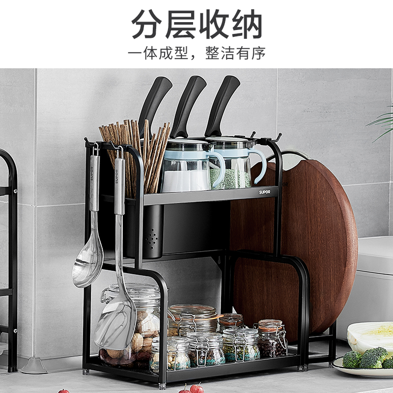 Suber seasoning can rack condiment storage layer rack knife holder storage layer rack free punch hanging rack double layer multi-use trough knife