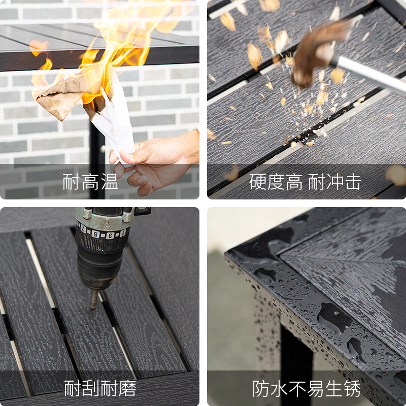 Outdoor plastic wood courtyard tables and chairs outdoor balcony leisure garden villas antiseptic wood dining tables and chairs waterproof sunscreen tables and chairs