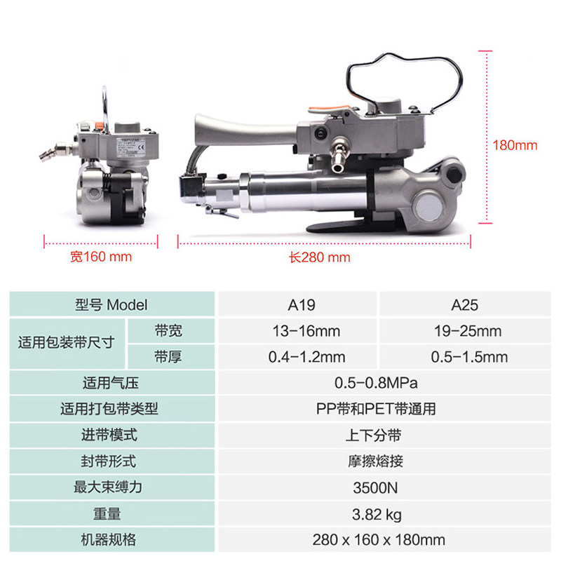 A19 Pneumatic steel plastic tape packer without buckle hot melt bundle machine tightening integrated automatic PP belt packer